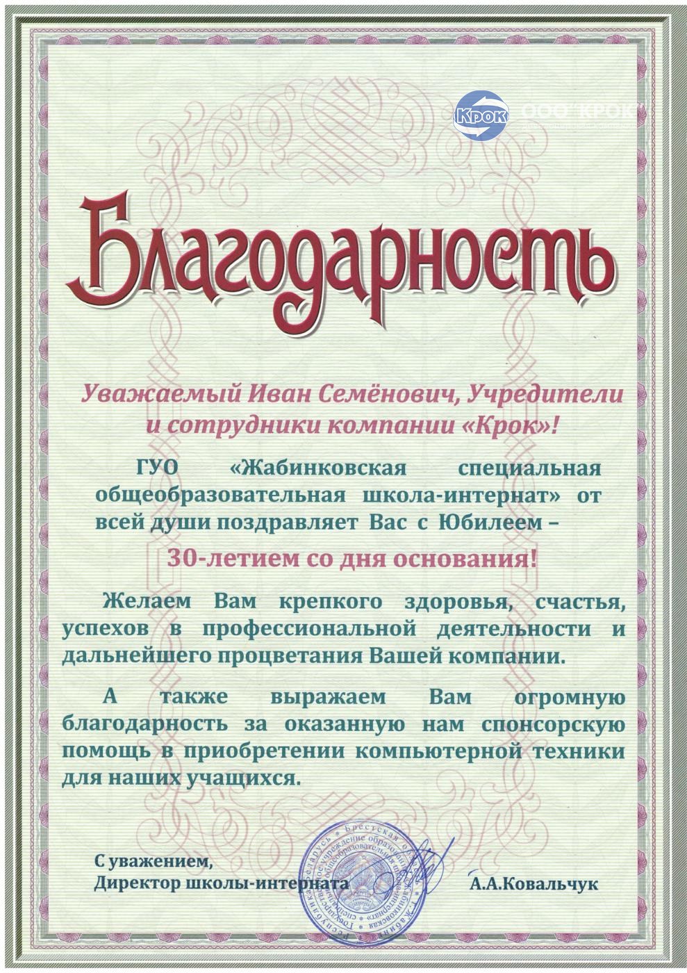 Со слов директора девелоперской компании «Крок» Ковальчука Ивана Семёновича — «это маленький подарок любимому Бресту в котором вот уже 30 лет мы живём и работаем.